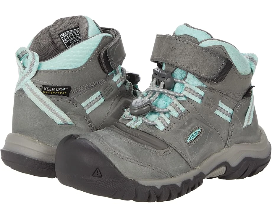 Take off on fun family adventures in the Keen® Kids Ridge Flex Mid WP boots featuring hook-and-loop closure, padded collar and bungee cord cinch for a more secure fit. SKU: #9524714Breathable textile uppers designed with KEEN.DRY® waterproof membrane to keep wet elements out.KEEN.BELLOWS FLEX offers built-in flex that makes every step feel easier, bending where other boots crack and weaken over time.Multi-directional lug pattern provides superior traction.Heel-capture system for added stability.Eco Anti-Odor for natural odor control.Leather and textile upper. Textile lining and insole. Durable, high-traction rubber outsole. Imported. Weight of footwear is based on a single item, not a pair.