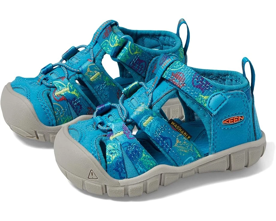 Splish splash through your adventure with the durable Keen® Kids Seacamp II CNX. Water-friendly sandals are designed in a machine-washable webbed upper with a hydrophobic mesh lining. Designed with Cleansport NXT™ technology naturally controls unwanted odors.SKU: #8242765Closed-toe sandal features a protective toe bumper, secure-fit lace capture system, adjustable hook-and-loop strap, and a pull-tab heel. Constructed with a cushioned midsole and a non-marking rubber outsole with multi-directional flex grooves for better traction.Imported.Product measurements were taken using size 7 Toddler, width M. Please note that measurements may vary by size.Measurements: