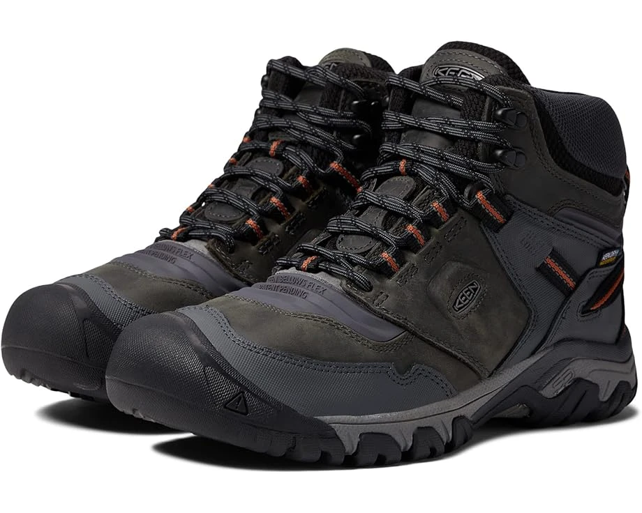Embrace your next outdoor adventure in the KEEN® Ridge Flex Mid WP. SKU: #9461058KEEN.DRY waterproof, breathable membrane keeps out the wet elements for a drier, more comfortable foot environment.Non-marking KEEN.ALL.TERRAIN rubber outsole with 4mm multi-directional lugs provides higher-traction grip.KEEN.BELLOWS.FLEX offers a built-in flex that makes every step feel easier, bending where other boots crack and weaken over time.Lace-up vamp.Round toe.Stability shank for lightweight support.Heel-capture system for added support.Eco anti-odor for natural odor control.PFC-free, durable water repellent.High abrasion rubber tip for durability and protection.Branding on upper and tongue.Leather and textile upper.Textile lining.Synthetic sole.Imported.Product measurements were taken using size 9, width D – Medium. Please note that measurements may vary by size.Measurements: