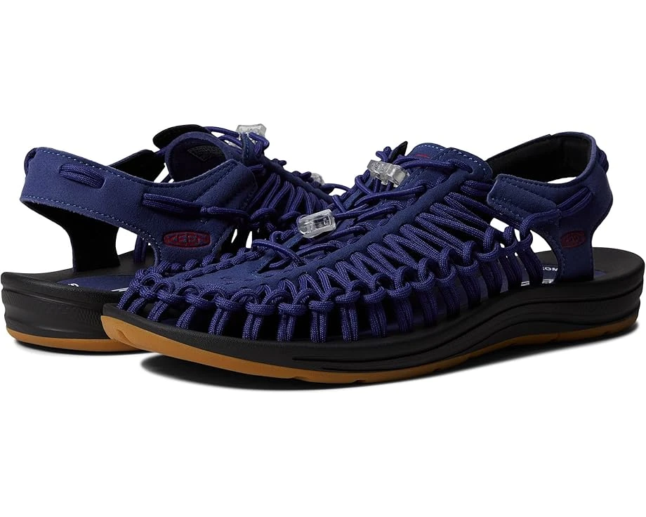 Soles haven’t experienced true, uninhibited freedom until they have slipped into the KEEN® Uneek sandal.SKU: #8475668Innovative two-cord upper construction features polyester braided cord with a nylon core that provides increased strength. Two cords and a simple, free-moving cord junction design allows the upper to move and adapt to the foot’s shape, promoting enhanced freedom of movement that doesn’t compromise structural support. Microfiber heel back provides both security and comfort. Bungee-lacing system offers a secure fit and feel. Metatomical footbed with microfiber cover molds to the foot for the perfect fit and feel. Lightweight PU midsole supplies lasting, daylong comfort. High-traction, non-marking rubber outsole with razor siping delivers secure, reliable traction. Imported. Product measurements were taken using size 11.5, width D – Medium. Please note that measurements may vary by size.Weight of footwear is based on a single item, not a pair.Measurements: