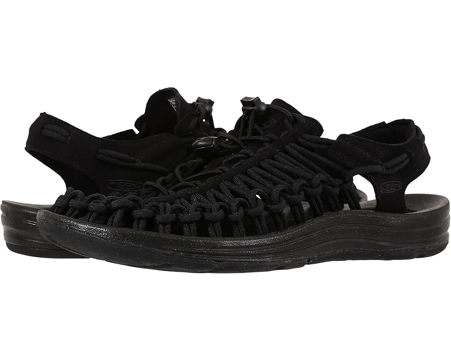 Soles haven’t experienced true, uninhibited freedom until they have slipped into the Keen® Uneek sandal.SKU: #8475664Innovative two-cord upper construction features polyester braided cord with a nylon core that provides increased strength. Two cords and a simple, free-moving cord junction design allows the upper to move and adapt to the foot’s shape, promoting enhanced freedom of movement that doesn’t compromise structural support. Microfiber heel back provides both security and comfort. Bungee-lacing system offers a secure fit and feel. Metatomical footbed with microfiber cover molds to the foot for the perfect fit and feel. Lightweight PU midsole supplies lasting, daylong comfort. High-traction, non-marking rubber outsole with razor siping delivers secure, reliable traction. Imported. Product measurements were taken using size 9, width B – Medium. Please note that measurements may vary by size.Measurements:
