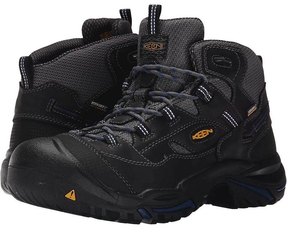 The long-lasting durability and reliable comfort of the Braddock Mid Waterproof Soft Toe work shoe by Keen Utility® will see you through every work day.SKU: #8642324Soft toe meets or exceeds ASTM F2892-11 EH (Electrical Hazard) standards.Soft toe shoe is ideal for medium duty indoor jobs. Waterproof nubuck leather upper.Left and right anatomically correct protective soft-toe shoe provides a roomier toe box and excellent arch support that cradles the natural contours of the foot. Traditional lace-up design.Features lining with hydrophobic and hydrophilic two-zone comfort technology.Cleansport NXT guards against foot odor for a fresher foot environment. KEEN.PROTECT is KEEN Patented Toe Protection where the shoe outsole wraps up and over the toes for ultimate protection.Removable metatomical dual-density EVA footbed provides long-lasting underfoot support and comfort.Direct attach PU midsole provides added shock absorption and comfort. TPU shank for excellent stability. Nonmarking KEEN.GRIP™ rubber outsole is oil and slip resistant, and meets or exceeds ASTM F1677-96 MARK II non-slip testing standards.Made in the U.S.A. using the finest imported materials from around the world. Product measurements were taken using size 11.5, width D – Medium. Please note that measurements may vary by size.Measurements: