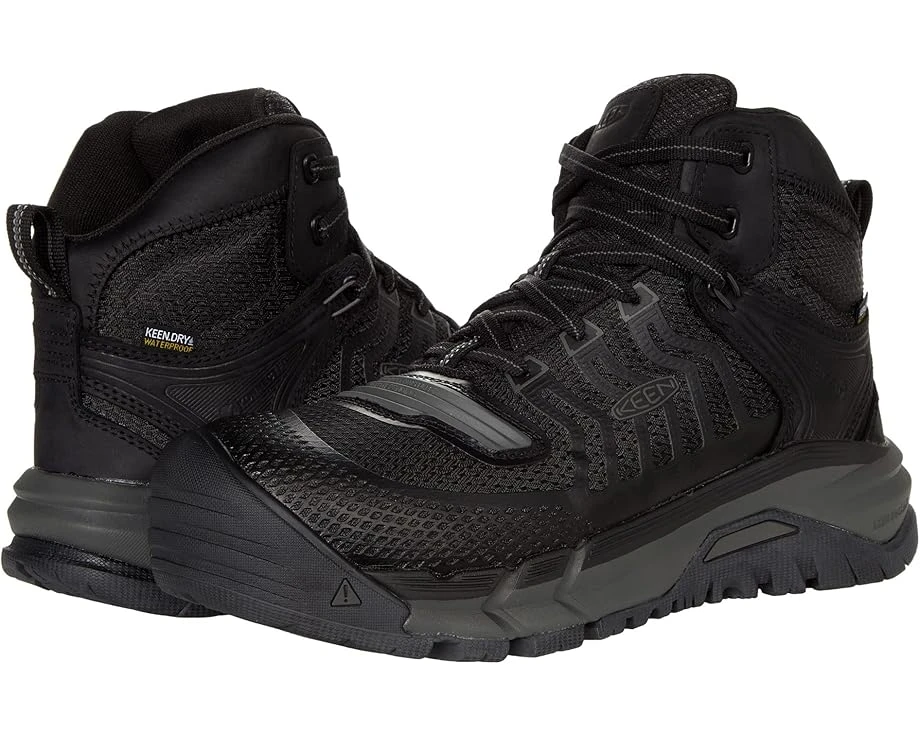 Get the job done right in the KEEN® Kansas City Mid KBF Waterproof. These safety shoes are constructed with a lace-up closure, composite safety toe, pull tab at the back, moisture-wicking lining to help keep your feet dry and a slip resistant rubber sole for traction and ultimate versatility.SKU: #9550119Left and right asymmetrical, non-metallic carbon-fiber composite safety toe meets ASTM F2412-18 and F2413-18 F I/75 C/75 EH standards and offers unobtrusive fit and are 15% lighter than steel.Removable footbed.KEEN.DRY waterproof, breathable membrane releases vapor from the interior without letting moisture in, creating a drier, more breathable foot environment. KONNECTFIT heel-capture system for a locked-in feel.