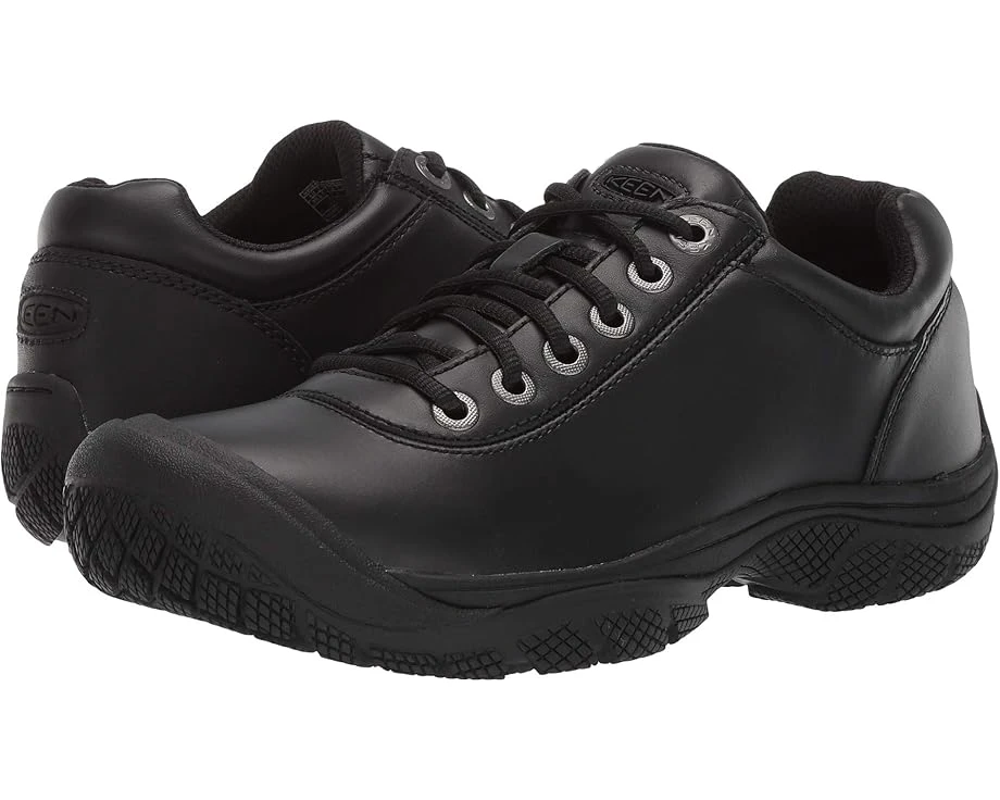 If you are in the service industry, these KEEN® Utility PTC Dress Oxford soft toe work shoes will be a great fit for you and your work lifestyle.SKU: #7719060Leather upper is water and stain resistant.Classic lace-up design.Compression molded EVA midsole.Logo detail at heel.KEEN.Cush PU and memory foam footbed.KEEN.WET TRAX outsole quickly channels liquids to maximize surface area contact.Non-marking rubber outsole is slip and oil resistant that meets ASTM F1677-96 MARK II and ASTM F2913-17 SATRA Non-Slip Testing Standards.Imported.Product measurements were taken using size 9, width D – Medium. Please note that measurements may vary by size.Measurements: