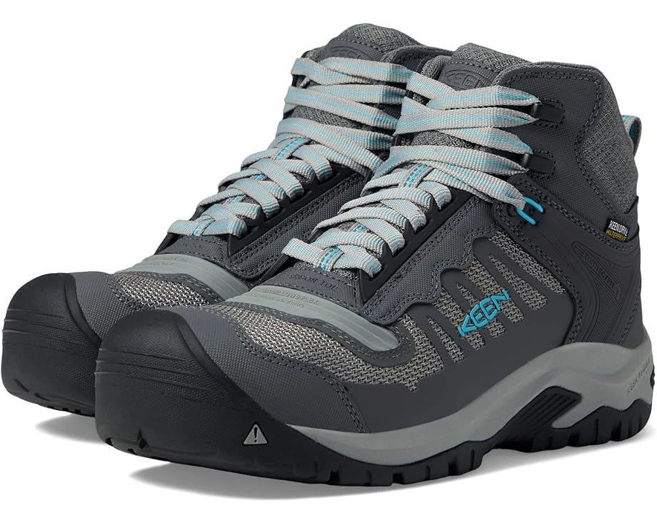 Step out in comfort and style in the KEEN® Utility Reno Mid KBF WP.SKU: #9841987Carbon fiber safety toe meets ASTM F2412-18 and F2413-18 F I/75 C/75 EH (Electrical Hazard) standard.Lace-up closure offers a secure fit.Round toe silhouette.Padded tongue and collar for added support.KEEN.DRY waterproof, breathable membrane releases vapor from the interior without letting moisture in, creating a drier, more breathable foot environment. Pull tab in back for easy on and off access.KEEN.ReGen midsole is lightweight and compression resistant, providing superior stability and shock absorption.Polyurethane coated leather upper.Mesh and moisture-wicking textile lining.Removable metatomical polyurethane insole.Slip resistant rubber outsole meets ASTM F1677-96 Mark II, ASTM F2913-19 SATRA non-slip testing standards.Imported.Product measurements were taken using size 7, width B – Medium. Please note that measurements may vary by size.Measurements: