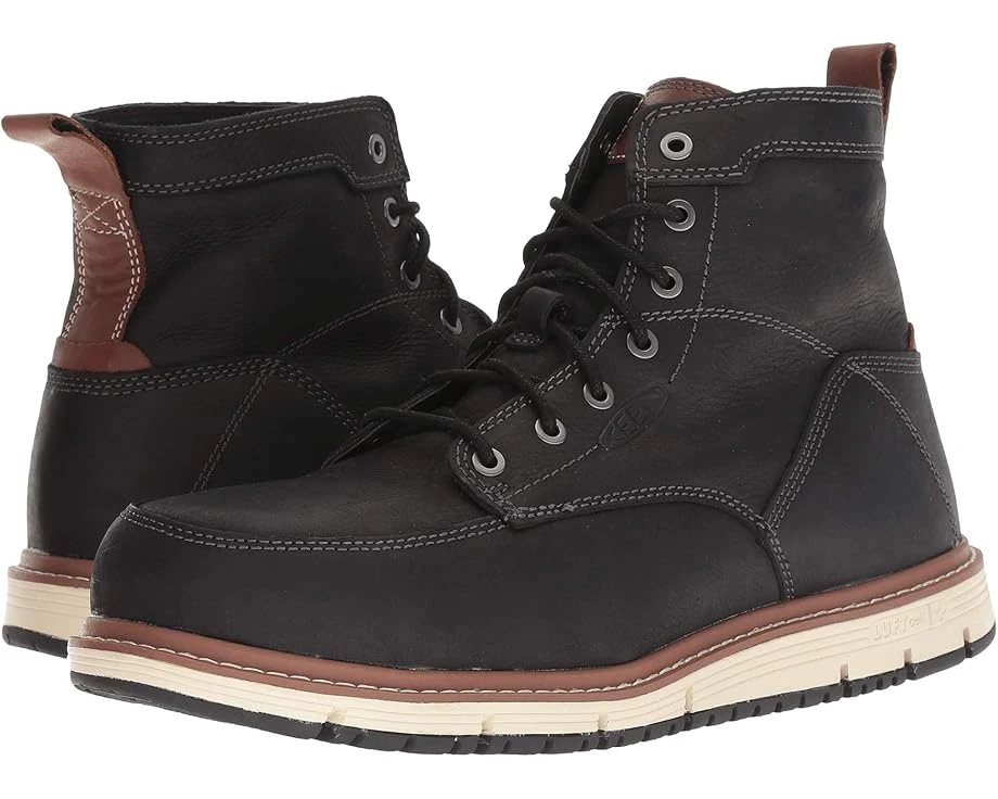 The Keen® Utility San Jose Aluminum Toe work boot offers a lightweight leather construction that still provides superior protection, underfoot support, and reliable slip resistance while you’re on the job. SKU: #9073617Style numbers: 1020053 (Black/Carmel Cafe), 1020057 (Falcon/Carmel Cafe) and 1020055-200 (Gingerbread/Off-White).Left and right asymmetrical aluminum safety toes work boot ideal for medium duty and provide more room in the toe box and added comfort.Waterproof leather upper.Interior features CLEANSPORT NXT™ for natural odor protection.Traditional lace-up system for a secure fit. Unlined interior. Removable, metatomical dual-density EVA footbed provides added support and underfoot comfort. KEEN LUFTCELL dual-density PU midsole is infused with air for weightless comfort and underfoot support. TPU shank for midfoot support.Outsole features siped technology that disperses liquids quickly for increased traction.Aluminum safety toe meets or exceeds ASTM F2412-11 and F2413-11 I/75 C/75 EH (Electrical Hazard) safety standards.Midsole meets ASTM D471-06 903# oil and isooctane chemical resistance standards. Non-marking KEEN.GRIP rubber outsole is oil and slip resistant. Meets ASTM F2913 SATRA and F1677-96 MARK II non-slip testing standards.Imported.Product measurements were taken using size 11.5, width D – Medium. Please note that measurements may vary by size.Measurements: