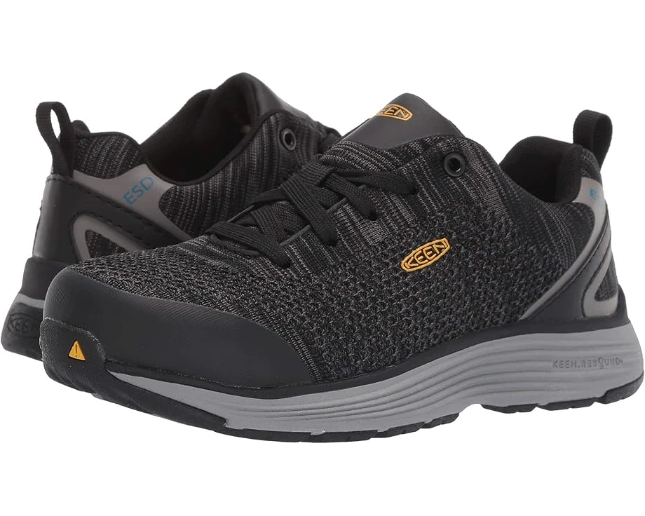 The KEEN® Utility Sparta Aluminum Toe ESD work shoe is built for the automotive industry and features a non-mutilating, non-marking construction with a durable safety toe to keep you protected all workday long. SKU: #9146386Style number: 1021350 (Black/Grey Flannel).Aluminum safety toe meets ASTM F2412-17 and F2413-17 M I/75 C/75 SD (Static Dissipating) 100 safety standards.Mesh and synthetic upper.Built on a women’s specific last for a better fit and improved support. Aluminum toe work shoe with electrostatic dissipative (ESD) protection that is designed to reduce excess static electricity. Features a non-mutilating design that reduces that chance of marking or scratching surfaces. Treated with Cleansport NXT™ technology to fight odors and provide a fresher foot environment.Left and right asymmetrical aluminum toe boots provide a roomier toe box and maximum comfort. Moisture-wicking textile lining allows for more interior breathability. Removable metatomical PU footbed provides long-lasting underfoot support and comfort. TPU shank for mid-foot stability and support. KEEN.Rebound midsole is lightweight and compression resistant, providing superior stability and shock absorption. Non-marking rubber outsole is slip- and oil-resistant, meeting ASTM F1677-96 MARK II and ASTM F2913-17 SATRA Non-Slip Testing Standards.Imported.Product measurements were taken using size 7.5, width B – Medium. Please note that measurements may vary by size.Weight of footwear is based on a single item, not a pair.Measurements: