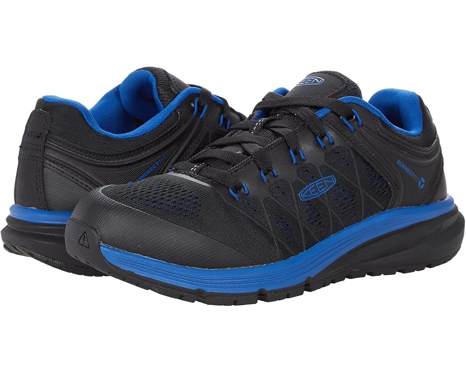 The Keen® Utility Vista Energy Soft Toe features mesh and synthetic upper with lace-up construction. SKU: #9513947Left and right asymmetrical KEEN.PROTECT soft toes help safeguard against minor impact, but not reinforced with a secondary crush resistance, meet ASTM F2892 EH safety standards.Mesh and moisture-wicking textile lining. PU insole. Dual density EVA and PU midsole. Removable footbed. Oil- and slip-resistant non-marking rubber outsole Meets ASTM F2913-17 SATRA non-slip testing standards and ASTM F1677-96 Mark II non-slip testing standards.